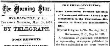 1. ^ "The Press Convention". Wilmington Morning Star. May 15, 1873.