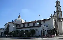 Saint Charles Borromeo Church, built in 1959 in a Spanish Colonial Revival style.