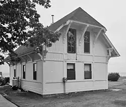The Crew Ready Room is a pyramidal hipped roof building where the on-duty crew would wait.[4] The building has lost much of its historical integrity, and is considered non-contributing to the historic district.