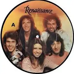 7" picture disc. Clockwise from upper left: Terry Sullivan, Michael Dunford, John Tout, Annie Haslam, and Jon Camp.