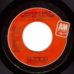 "Nothing Ever Goes as Planned" is a song written by Dennis DeYoung and released by American rock band Styx on their tenth album Paradise Theatre, as well as being the 3rd single released from the album. A chart disappointment following the first two singles off the album, it peaked at No. 54 on the U.S. pop chart in late summer 1981. It also reached No. 33 on the Canada RPM Top Singles chart in the week of September 5, 1981.