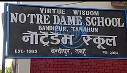 Notre Dame School (NDS) is a school Catholic school located in Bandipur, Nepal The school was founded by the School Sisters of Notre Dame (SSND), a congregation of Roman Catholic sisters founded in Bavaria in 1833 and devoted to educating students at all levels around the world.