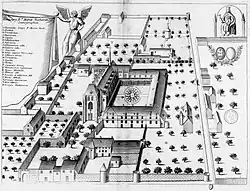 17th-century engraving of Noyers Abbey (Monasticon Gallicanum)