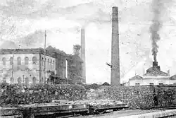 The origins of the company can be traced back to 1873, when José Maria Quijano Fernández-Hontoria and Benigno Arce visited the 1873 Paris World's Fair and observed machinery for making steel nails.[1] José set up a factory using this equipment in his family's flour mills. The company came to be known as Forjas de Buelna.[2] In 1879, the company purchased machinery for making plate iron and drawing wire. The company was an early adopter of many technological advances. Electrical lighting was installed in 1880, as was a telephone line in 1881. In 1892, a Worker's Cooperative was set up, offering a pension and workers' compensation.[1] In 1948, the company merged with Altos Hornos de Nueva Montaña to become Nueva Montaña Quijano S.A..[3] The company continued to expand, including buying other steel companies' mines and updating them with more modern equipment. In the mid-1950's, the company built the neighborhood of Grupo Santiago De Nueva Montaña Quijano, located in the municipality of Camargo, to house its workers.[4] At one point, the company was taken over by the Spanish government, but it was privatized in 1985.[5] In 1987, the company became part of the CELSA Group, under which the name was changed to Global Steel Wire, S.A.[6] The company maintains its own cargo port and warehouses.[7][8] The company formerly had its own narrow-gauge railway.[9][10]