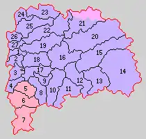 The towns of Iwazu and Fukuoka, and the villages of Motojuku, Yamanaka, Fujikawa, Ryudani and Tokiwa were merged into the city of Okazaki on February 1, 1955; and on September 30, 1956, the villages of Toyotomi, Miyazaki, Katano, and parts of Shimoyama were merged to form the town of Nukata.