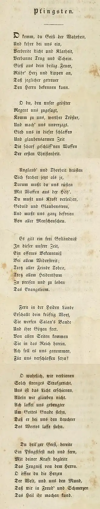 3. ^ a b c "O komm, du Geist der Wahrheit". liederdatenbank.de (in German). Retrieved 10 May 2021.