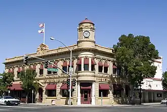 Victorian era First National Bank of Oakdale building in downtown Oakdale.