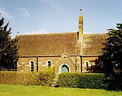 Oakhanger contains four Grade II listed buildings. Oakhanger Farmhouse is a two-storey house which dates from 1811 with late 19th century extensions. It consists of walls made of Flemish bond with blue headers, flat arches, and stone cills. The farmhouse became a Grade II listed building 18 July 1986.[13] Two stables which lie both east and north are also Grade II listed buildings: the stable to the east dates from 1814 and has yellow carstone walls, whereas the stable to the north was built in 1820 and has a hipped tiled roof.[14][15] The final listed building is a barn which lies 20 metres (66 ft) east of Oakhanger Farmhouse. It dates from the 18th century and consists of timber framed walls with sections of boarding, brickwork, and ironstone.[16] St Mary Magdalene's Church was built in 1873 by architect Moreton Glover. It is part of the Diocese of Winchester and has since never been restored nor is it a listed building.[17] On the fifth Sunday every month the church hosts a Benefice Holy Communion.[18]