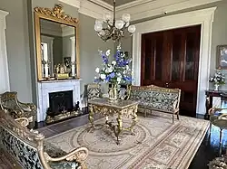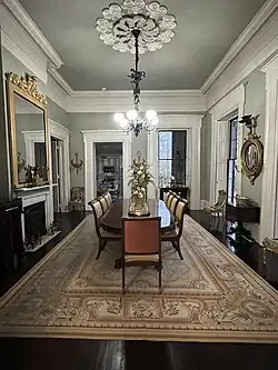 Oakland was built by Horatio Sprague Eustis (1811 - 1858) as a wedding gift for his wife Catherine Chotard (1820 - 1877) in 1840. The land (22.5 acres) had been part of her wedding dowry from her father Major Henry Chotard (1987 - 1870) in 1838. [2] It was built in the Greek Revival style[2] and consisted of the main house and two large outbuildings (only one of which survives) forming a “U” shape compound with a long alley of majestic Oaks approaching from the west. After graduating from Harvard in 1830, Mr Eustis had relocated from Rhode Island to Natchez where he practiced law. Miss Chotard was from a prominent Natchez family with her maternal grandfather being the last Spanish Governor of the Natchez territory Stephen Minor (1760-1844) [2] and her father having served as General Andrew Jackson’s aide-de-camp during the Battle of New Orleans in 1815. In 1857 the property was sold to her first cousin John Duncan Minor (grandson of the Spanish territorial governor) and his wife Katherine Surget Minor. Despite Mississippi’s succession during the American Civil War (1861–1865)[2], the Minor’s remained steadfast Unionists and frequently entertained Federal officers following Natchez’s occupation in 1863. This was not well received by many in Natchez and the associated stress led to a decline in Mr Minor’s health leading to his death in 1869 at age 37. Oakland remained in the hands of the Minor family until 1949 when it was sold to Alan W. Granning who subsequently subdivided the property leaving 3 1/2 acres around the residence. The title passes to Lawrence and Kate Don Adams in 1960 after which the house became part of the annual Natchez Pilgrimage. In 2021 the property was purchased by Dr Thomas and Dorie LeMay who undertook a three year complete restoration. Along with the extensive repairs, the LeMay’s furnished the home with period American, French as well as Russian furniture and decorative arts. They continue to upgrade the property and its collections while splitting their time between this and their other Natchez home the LeMay Arrighi mansion.