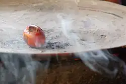 Clean grasshoppers are cooked by immersing them in boiling water seasoned with garlic and lime.[10] The most common way to eat them is fresh off the comal and with a tortilla, but they are also consumed fried with chili powder as a snack (especially with mezcal) and can be found in more sophisticated preparations, in a sauce or mixed with eggs.[10][13]