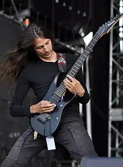 Founder and frontman Steffen Kummerer with his seven-string signature Ran guitar