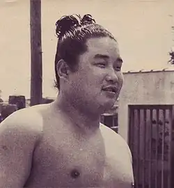 Oginohana Masaaki ( born Masaaki Motomura, 29 November 1935 – 16 December 2006) was a sumo wrestler from Ogi, Saga, Japan. He made his professional debut in 1952 and reached the top makuuchi division in 1957. His highest rank was sekiwake. He retired in 1967 and worked as a coach at Dewanoumi stable before leaving the Sumo Association in 2000 upon reaching the mandatory retirement age of 65. He was the father of Oginohana Akikazu and Oginishiki Yasutoshi, both successful sumo wrestlers themselves.