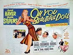 Oh, You Beautiful Doll is a 1949 American musical film directed by John M. Stahl (his final film), starring the musical queen June Haver and Mark Stevens. Co-stars included S.Z. Sakall, Charlotte Greenwood, and Gale Robbins.[3]