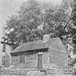 The building is a simple log structure with a gabled roof, pierced by a single chimney; one window is set into the side, and the front has space for just one window and the main entrance. Its location on a slope permits the slight exposure of the foundation on one side.[4] Smaller elements include shutters for the windows and a pair of steps that provide access to the main entrance.[5] As the oldest extant building anywhere in Ohio, the land office had become the focus of significant attention by the opening years of the twentieth century, with organizations such as Marietta's historical society devoting extensive effort to ensure its preservation.[4]
