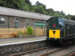 Okehampton railway station is a terminus railway station on the Dartmoor line serving the town of Okehampton in Devon, England. The station closed to regular traffic in 1972, but heritage and occasional mainline services ran from 1997 to 2019. Regular railway services resumed in November 2021.
