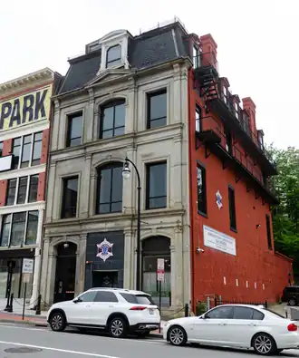 The Old State Mutual Building is an historic commercial building at 240 Main Street in Worcester, Massachusetts. It served as the offices of the State Mutual Life Assurance Company from its construction in 1870 until 1897. Designed by Charles B. Atwood, it is one of a few surviving Second Empire commercial buildings in the city.[2][3] The granite building is four stories high, the last of which is under a mansard roof. It is three window bays wide, with a slightly projecting central bay, which is topped at the third floor by a small pediment. The bays are divided by Ionic pilasters, and the rooftop is crowned by an iron railing.[2]