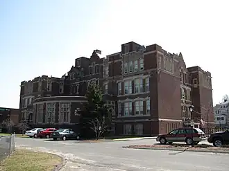 Old Watertown High School is a historic school building at 341 Mount Auburn Street in Watertown, Massachusetts, United States. The 3+12 story brick building was built in 1913 by local architect Charles Brigham. Now an assisted living facility named Brigham House, the English Revival structure is one of Watertown's most imposing public buildings, standing about one mile east of Watertown center. When built it first served as the city's high school, but was converted to a junior high school in 1925, a role it served until the late 1980s. It then stood vacant until its conversion to housing in the 2000s.[2]