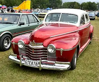The Oldsmobile Series 70 is a full-size midrange automobile produced by Oldsmobile between the 1939 and 1950 model years.[2][1] Oldsmobiles of this time period were in an upwardly-shaded "middle" position in GM's hierarchy of automobile brands. Chevrolet and Pontiac were the budget priced models, while Buick and Cadillac were the high-end brands. GM would share their "A" body platforms between Chevrolet and Pontiac, and midrange "B" body on Oldsmobile and Buick, while leaving mainstream Cadillacs and senior Oldsmobiles and Buicks (such as the Oldsmobile 98 and Buick Roadmaster and Limited), and even the Pontiac Streamliner, on its top production luxury "C" platform. Leaving ifs largest and most prestigious D platform to senior Cadillacs and the 1936–1942 Buick Limited.