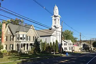 Historic buildings, the Charles E. Dickerson House and the Oldwick Methodist Church, along Main Street, 2016