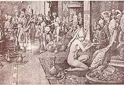 ![]() Bayezid I is encaged, while his captive wife (Olivera Despina) is treated as a slave (1860) by Peter Johann Nepomuk Geiger | |||||