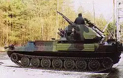 (LSPZRA for lekki samobieżny przeciwlotniczy zestaw rakietowo-artyleryjski – lit. light, self-propelled, anti-aircraft, combined gun and missile system; Sopel is Polish for Icicle) - air defence variant armed with twin 23 mm cannon and two 9M32M "Strela-2M" surface to air missiles. Vehicle designed as air-defence vehicle for mechanized units. Only prototype.[6]