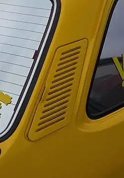 Most customers opted for the "Limousine" bodied saloon car which came with two doors. A four-door "Limousine" was produced mostly for export to markets where cars of this size with only two doors encountered customer resistance. In West Germany itself, however, the small family car market continued to be dominated and defined by Volkswagen for whom two doors in a small family car was still quite sufficient: the four door Kadett C is remembered in Germany as an "export special".[2] The Limousine body accounted for just under 63% of the Opel Kadett Cs produced. A further 11% were three door estate-bodied cars badged, following Opel tradition, as the Kadett Caravan, with the two-door coupés accounting for slightly under 10%.[2] Publicity of the time, possibly originating with Mercedes-Benz, indicated that in order to minimize the risk of fire in the event of collision, the safest position for a car's fuel tank was above the rear axle between the passenger cabin and the boot/trunk, and this is where the Kadett C "Limousine" and "Coupé" had their fuel tanks fitted, accessible for refilling via the (unexpectedly, hinged,) extractor vent on the car's right-side C-pillar. On the "Caravan" bodied estate car the fuel tank was a flatter shape, and was positioned under the rear cargo area.[4]
