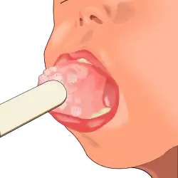 Oral florid papillomatosis is a condition characterized by a white mass resembling a cauliflower covering the tongue and extending onto other portions of the mucous membranes.[1]: 805  This is a type of verrucous carcinoma.[2]