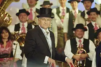 The Orden wider den tierischen Ernst (German for 'Order for Combating Deadly Seriousness') is a carnival order that is awarded once a year by the Aachen Carnival Association to public figures.[1][2] The order of knights[2] honors people who combine "humor and humanity in office".[1] The popular order has been awarded since 1950.[3] The award ceremony traditionally takes place during a foolish ceremony (närrische Festsitzung).[3] The WDR has been recording the ceremony for the first and third programs since 1995.[4] In 2020 around 2.8 million people across Germany watched.[4]