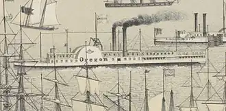 Oregon[1] built in 1845, was a side-wheel driven steamboat operating on the Hudson River. Originally built for George Law, it was later bought by Daniel Drew. Drew was operating a service using his boat Knickerbocker on the Stonington and New York route. George Law saw the chance to provide competition and had the Oregon (a "floating palace") built in 1845.