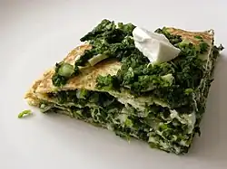 Today lasagna or crouzet (see crozets de Savoie) is used in alternating layers with creamed spinach and grated cheese.[3]