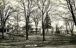 Author Washington Irving visited Orford in 1832 and is quoted as saying, "In all my travels in this country and in Europe, I have seen no village more beautiful than this. It is a charming place—nature has done her utmost here."[4] Of the famous sequence of seven early homes built on The Ridge, Dartmouth Professor of Architecture Hugh Morrison said, "As a row and counting the setting, this is the finest group of Federal-style houses in the United States."[5] Built between 1773 and 1839, the dwellings show the influence of architect Asher Benjamin.