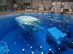 The Japanese Experiment Module (JEM), christened Kibō ("hope") in 1999, is Japan's first crewed spacecraft. Kibō consists of a pressurised laboratory dedicated to advanced technology experiments, education and art, a cargo bay, an unpressurised pallet for vacuum experiments in space, a robotic arm, and an interorbital communication system. While the proposed space station was redesigned many times around Kibō, the only significant change has been the placement of its ballistic shielding. Its final position at the front of the station increases the risk of damage from debris. The ESA and NASA, by contrast, both reduced the size of their laboratories over the course of the programme. The Japanese National Space Development Agency (NASDA) formally submitted the JEM proposal to NASA in March 1986, and by 1990 design work began.[2][9][10] Constructed in the Tobishima Plant of Nagoya Aerospace Systems Works, by Mitsubishi Heavy Industries, Ltd., Kibō made its way to the Tsukuba Space Center and in 2003 Kibō was shipped, first by river barge and then by ship, to America. In 2010, Kibō won the Good Design Award, a 68-year-old consumer and industry award which identifies the best of Japanese craftsmanship.[11][9]
