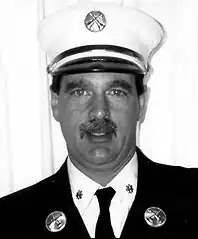 Orio Joseph Palmer (March 2, 1956 – September 11, 2001) was a Battalion Chief of the New York City Fire Department who died while rescuing civilians trapped inside the World Trade Center on September 11, 2001.[2][3][1] Palmer led the team of firefighters that reached the 78th floor of the South Tower, the floor where the plane had struck the building.[2][3] As of 2025, his remains have never been identified.