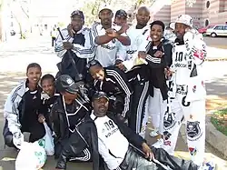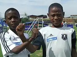The club was founded in 1937 and was originally based in Orlando, Soweto.[3] Orlando Pirates are the first club since the inception of the Premier Soccer League in 1996 to have won three major trophies in a single season back to back, having won the domestic league ABSA Premiership, the domestic cup Nedbank Cup and the Top 8 Cup MTN 8 during the ABSA Premiership 2010–11 season and domestic league ABSA Premiership, the League Cup Telkom Knockout and the Top 8 Cup MTN 8 during the ABSA Premiership 2011–12 season.[4] They are one of only two South African teams with Mamelodi Sundowns to win the CAF Champions League, which they won in 1995 and were runners up of 2013 CAF Champions League.[5]