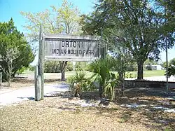 One of the area's attractions is the Ortona Indian Mound Park, which preserves part of the Ortona Prehistoric Village, and the hiking trail through that area.[2] The prehistoric mounds, canoe canals and earthworks were constructed by Native Americans across a five-square-mile region along the north side of the Caloosahatchee River.[3] The site is located on SR 78, north of LaBelle.[4][5]