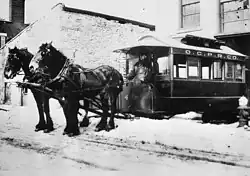 Preceding the use of electric streetcars, Ottawa's first public transportation system was the operation of a horsecar system. Tramway service began in July 1870.[1] under the Ottawa City Passenger Railway Company, which was incorporated on August 15, 1866.[2]