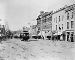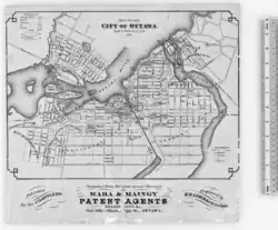 Thomas Ahearn, born in LeBreton Flats, also became an important figure in the early years of electricity in Ottawa. Ahearn had been a telegraph operator, and in 1892 filed patents for both an "electric oven" and a "system of warming cars by means of electrically heated water".[7] Ahearn formed a partnership with Warren Y. Soper, and for years the office of Ahearn and Soper was on Sparks Street. Ahearn merged existing companies (Clemow's) Ottawa Electric Light Company, and Ahearn's company, Chaudière Electric Light and Power Company, with a third company, naming it Ottawa Electric Company.[8] It became part of Ahearn's Ottawa Light, Heat and Power Company, which eventually was taken over by Ottawa Hydro.[8][9]