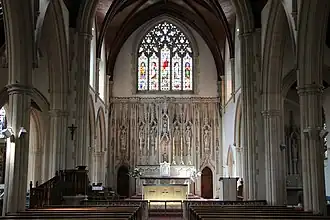 Before 1900, the site of the present church was bought. On 11 December 1900, the foundation stone of the church was laid. The architect was Frederick Walters and he designed the church in the Gothic Revival style. The total cost of the construction of the church came to £11,000. On 15 December 1901, the church was opened by the Bishop of Southwark, Francis Bourne, who went on to become a cardinal and Archbishop of Westminster. In 1903, the church was completed, with the exception of the tower. By that time, the priest of the church was Fr Paul Lynch. In 1912, the church's tower and spire were completed. On 11 February 1926, various church extensions, such as the chancel, lady chapel and sacristy, were completed and the church was reopened. On 8 July 1926, the church was consecrated.[3][4]
