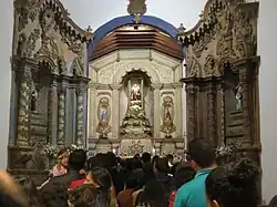 The religious traditions of the Week of Sorrows and the Feast of the Steps have been held during Lent since the 18th century by the local brotherhoods and confraternities, and with the extinction of these, the celebration was taken over by the Blessed Sacrament. Until mid 1940, on every Friday of Lent, there was a mass celebrated in the Church of Bonfim, where the choir and orchestra performed the Sorrows Motets attributed to Basílio Martins Braga Serradourada (1804-1874), as part of the celebrations of the Feast of the Steps.[42][43][44] However, the festivities of the Steps were paralyzed between the penultimate and last Friday before the Holy Week for the Week of Sorrows, and in it, the celebration of the Septenary of Sorrows, which was a paraliturgy that, for seven days, commemorated the meditation of the seven sorrows of Mary. It was held at the altar of Saint Francis of Paola in the Mother Church, where the image of the Sorrows was placed, and was prayed over by the vicar, who exposed the Blessed Sacrament there for the recitation of prayers, and accompanied by the Choir and Orchestra that performed a repertoire in Latin and Portuguese, with compositions by composers from Goiás.[45]