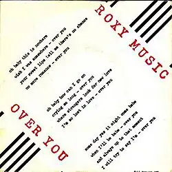 "Over You" is a song by the English rock band Roxy Music which was released as the lead single from their seventh studio album, Flesh and Blood (1980). "Over You" entered the UK Singles Chart at No. 18 before going on to reach a peak of No. 5 on June 14, 1980. The song spent a total of nine weeks on the UK Singles Chart, of which seven were in the top 20.[3] Over you was given a silver certification from the BPI in June 1980 for sales of over 200,000 copies in the UK.[4]