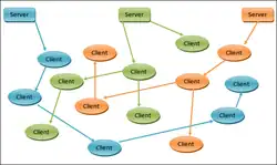 In a P2PTV system, each user, while downloading a video stream, is simultaneously also uploading that stream to other users, thus contributing to the overall available bandwidth. The arriving streams are typically a few minutes time-delayed compared to the original sources. The video quality of the channels usually depends on how many users are watching; the video quality is better if there are more users. The architecture of many P2PTV networks can be thought of as real-time versions of BitTorrent: if a user wishes to view a certain channel, the P2PTV software contacts a "tracker server" for that channel in order to obtain addresses of peers who distribute that channel; it then contacts these peers to receive the feed. The tracker records the user's address, so that it can be given to other users who wish to view the same channel. In effect, this creates an overlay network on top of the regular internet for the distribution of real-time video content.