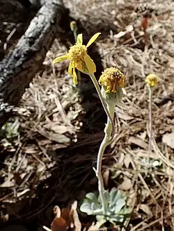 Packera actinella, synonym Senecio actinella, is a flowering plant in the family Asteraceae.[1] Known as flagstaff ragwort, it is a perennial herb native to Arizona, New Mexico, and part of northern Mexico.[2][3] It is an arid land plant, sending up solitary flowering heads on long stalks above a perennial basal mat in ponderosa pine forests.