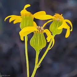 Packera eurycephala is a species of flowering plant in the aster family known by the common name widehead groundsel. It is native to a section of the western United States encompassing southern Oregon, northern California, and northern Nevada. It can be found in dry habitat types, often in disturbed areas, and it favors serpentine soils.