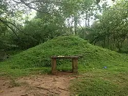 The temple, situated in the Padiyathalawa colony is believed to be constructed during the reign of king Kavan Tissa (205–161 BC).[2] The Dagoba, which is now in the dilapidated state, resembles only a mound of earth and a short rubble wall has been built along its perimeter. Near to the Dagoba is a torso statue of Buddha which is about 4 feet (1.2 m) in height. The nearby building, marked with a Dharmachakra is believed to be an old Bhikkhu dwelling and now is in the ruined state. Remaining ruins of a rampart or probably a Bodhighara, a stone door frame and granite pillars can be identified within the temple premises. The Bodhi tree which is being highly venerated by the local Buddhists, is believed to be from one of saplings of Jaya Sri Maha Bodhi in Anuradhapura.[3][4][5]