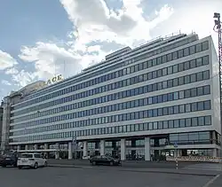 The Palace Hotel is an historic modernist hotel in Helsinki, opened in 1952, the year of the Helsinki Olympic Games.[1] The building was designed by architects Viljo Revell and Keijo Petäjä, and was constructed during 1949–1952.[2][3] In addition to the Palace Hotel and related restaurants, the building hosted also the main offices of the Confederation of Finnish Industry and Employers.[4] The interiors of the building were furnished by various renowned Finnish interior designers, such as Olli Borg, Antti Nurmesniemi and Olavi Hänninen.[1][3][4]