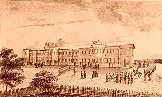 Located in the perimeter of the medieval Princely Court of Moldavia (from 1434), the construction was conceived as a rebuilding and expansion project of the former Princely Palace of Moldavia, dated to the time of Prince Alexandru Moruzi (1803–1806, architect Johan Freywald), and renovated by Prince Mihail Sturdza (1841–1843, architect Nicolae Singurov), from which it preserved the foundations and first two floors.[2][3] It was from this latter building that the Palace inherited the legend of the 365 rooms, as many as the days within one year.[4]