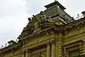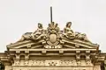 Triangular pediment on central avant-corps, heraldic element, a pair of Muse sculptures and decorative dome