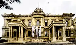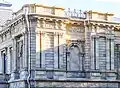 Facade on the side of Niyazi street and specially mentioned and not deep avant-corps which has three axis are divided into two floors with stylobates which are profiled through the whole corps. The central axis is striking with small dome as well. The whole composition of the façade is enriched with lightweight loggia-porticoes of the Ionic order, which is particularly noticeable. This method led to the creation of a composition with landscape. The classic forms of the columns of the visible portico, corinthian order of the avant-corps, the profiles of window frames, and construction of first floor from deep and second floor of lightweight stones creates plastic composition.[7] The palace has unique properties for buildings similar to other building in Baku. In the 1930s, the reconstruction of the land was completed. The volume of the palace was included in the reconstructed garden composition by architect K. İ. Senchikov, which created a whole ensemble.[11]