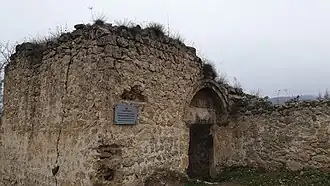 The main entrances of the castles were facing north, similarly to the Shahbulag Castle, being protected from a direct access by prismatic gate towers with L-shaped passages extended outward.[7] The upper parts of the Panah Ali Khan's Shusha castle have not been preserved. E. Avalov noted that in Panah Ali Khan's castle, as well as in the Shahbulag castle, and in the castle of Gara Boyuk Khanim, there was a two-story gate tower.[7]