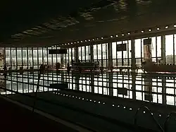The project's first phase was financed with city funds only.[4] Because of this and urbanistic concerns, it was pitched as a simple physical education venue, and did not have a stand.[5][4] In 1941, the government allocated funds covering three quarters of the stand's construction costs, but various circumstances delayed the extension for more than a decade.[7] After many delays, building started at the end of 1951[8] and proceeded thanks to FF5 million worth of credits voted by the city council.[9] The new version reopened on 17 March 1953.[10]